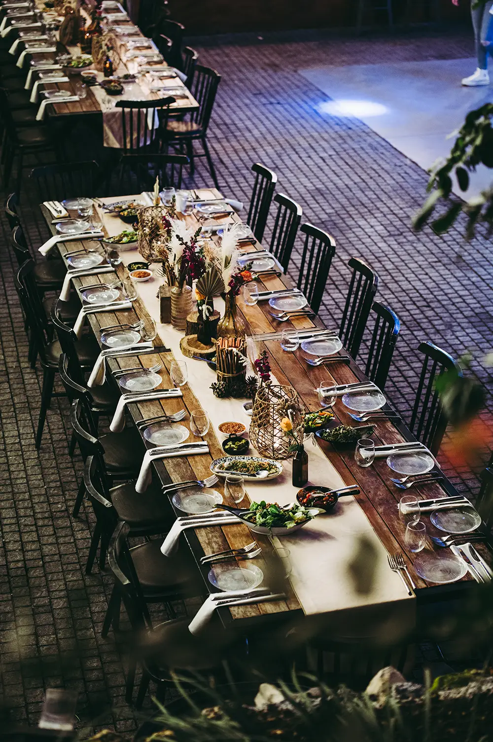 השילוב בין חוץ לפנים יוצר תחושת המשכיות מושלמת כך שגם ביום גשום, האירוע שומר על האווירה הפסטורלית של המקום.