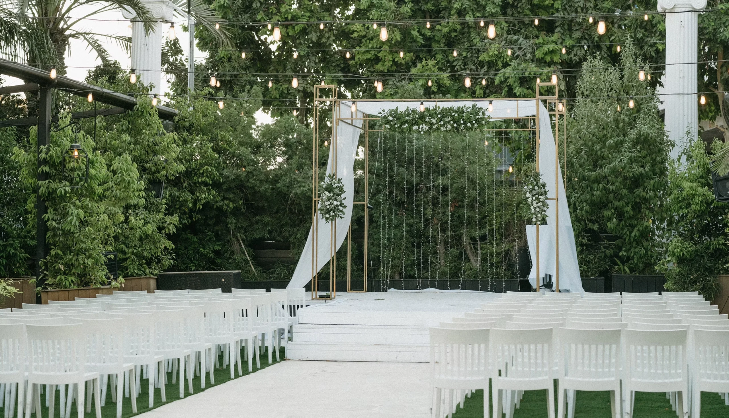 הגן רחב, נושם, ומעניק תחושת מרחב אמיתית בדיוק כמו שאירוע בשרון צריך להרגיש.